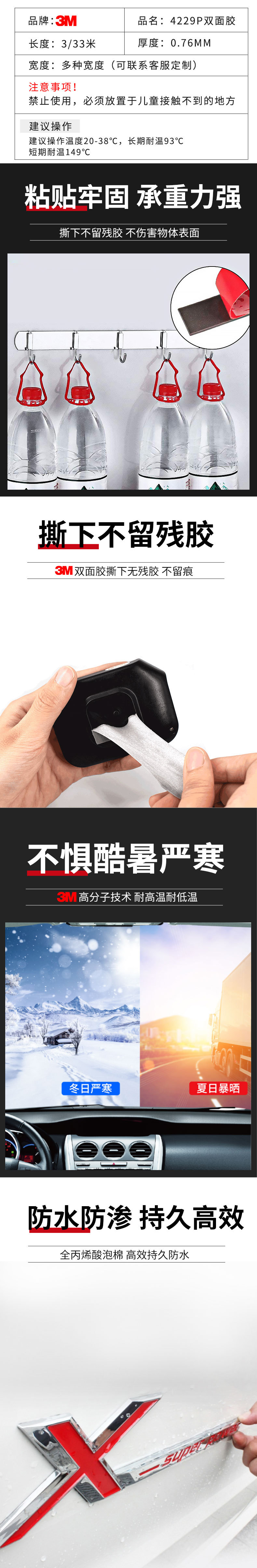 3M4229P双面胶泡棉汽车专用强力胶带防水耐高温车用粘贴无痕胶带