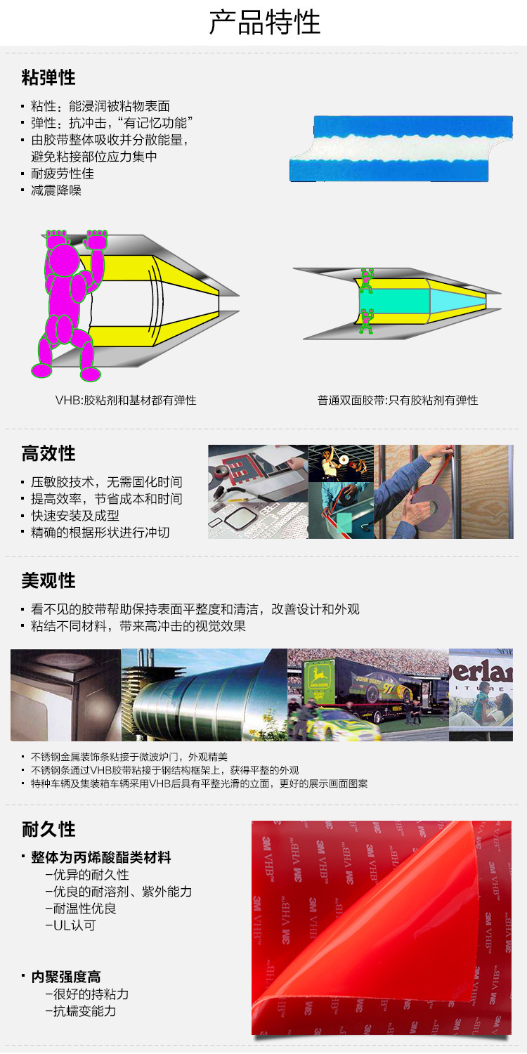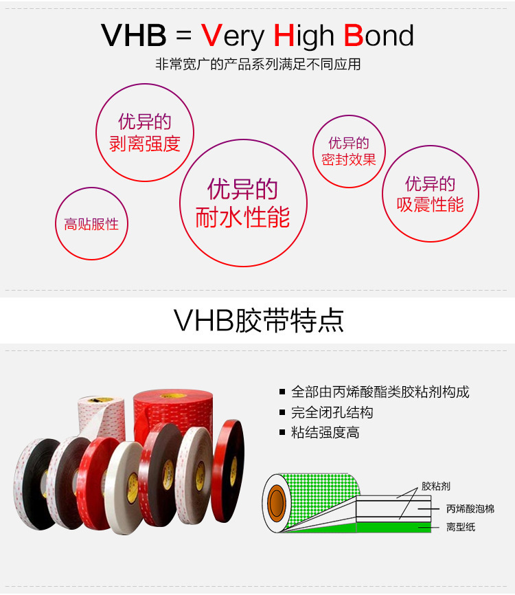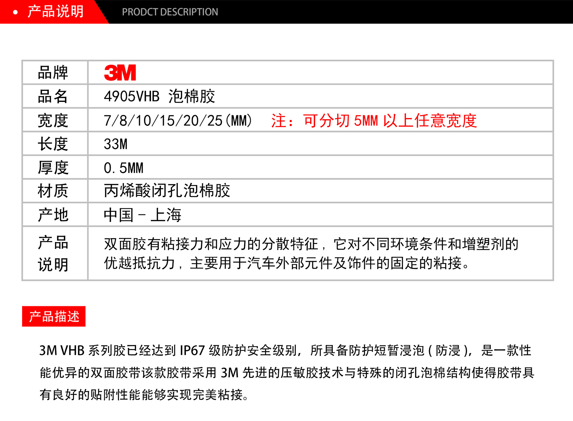 3M4905VHB双面胶带 透明亚克力胶4905P强力高粘金属玻璃汽车胶带
