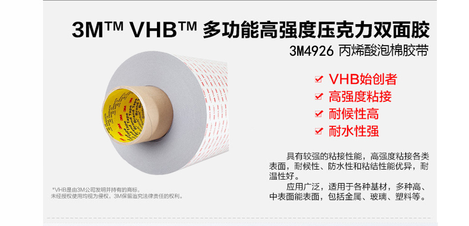 3M4926双面胶 VHB丙稀酸泡棉胶 灰色亚克力双面胶